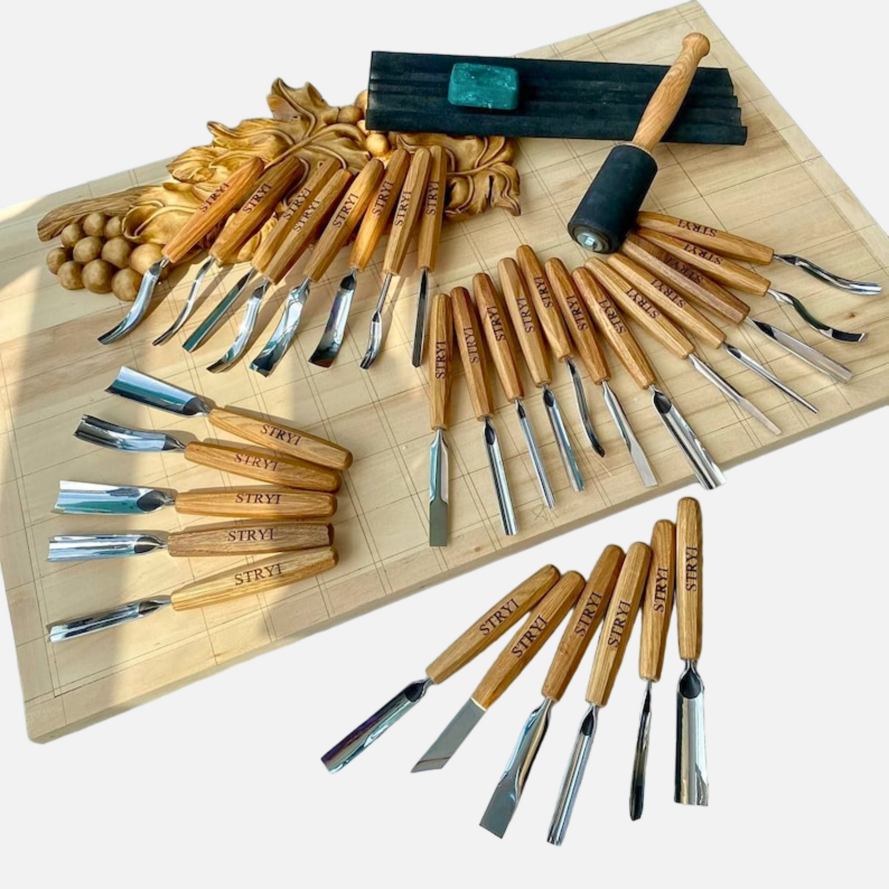 Das 31-teilige professionelle Holzschnitzwerkzeug-Set STRYI Profi ist eine umfassende Sammlung von 31 hochwertigen Instrumenten, perfekt sowohl für Anfänger als auch für erfahrene Profis.