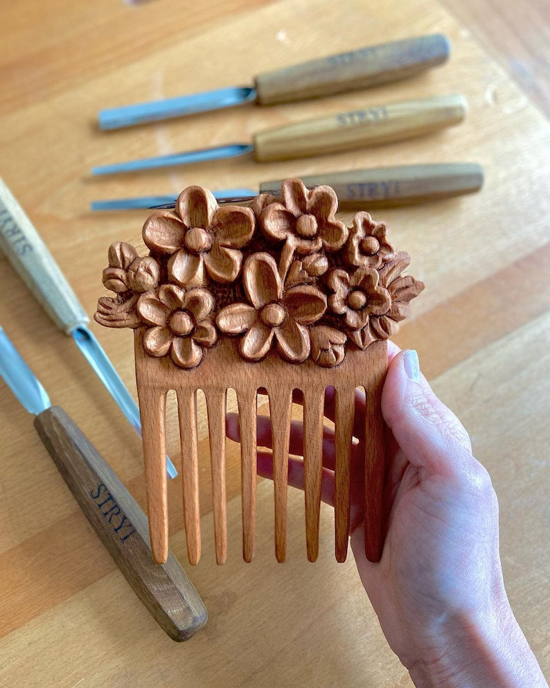 Kerbschnitzen: Die scharfen und präzisen Klingen machen das Kerbschnitzen zum Kinderspiel und ermöglichen Ihnen das Erstellen präziser, komplizierter Muster und Designs auf der Holzoberfläche.