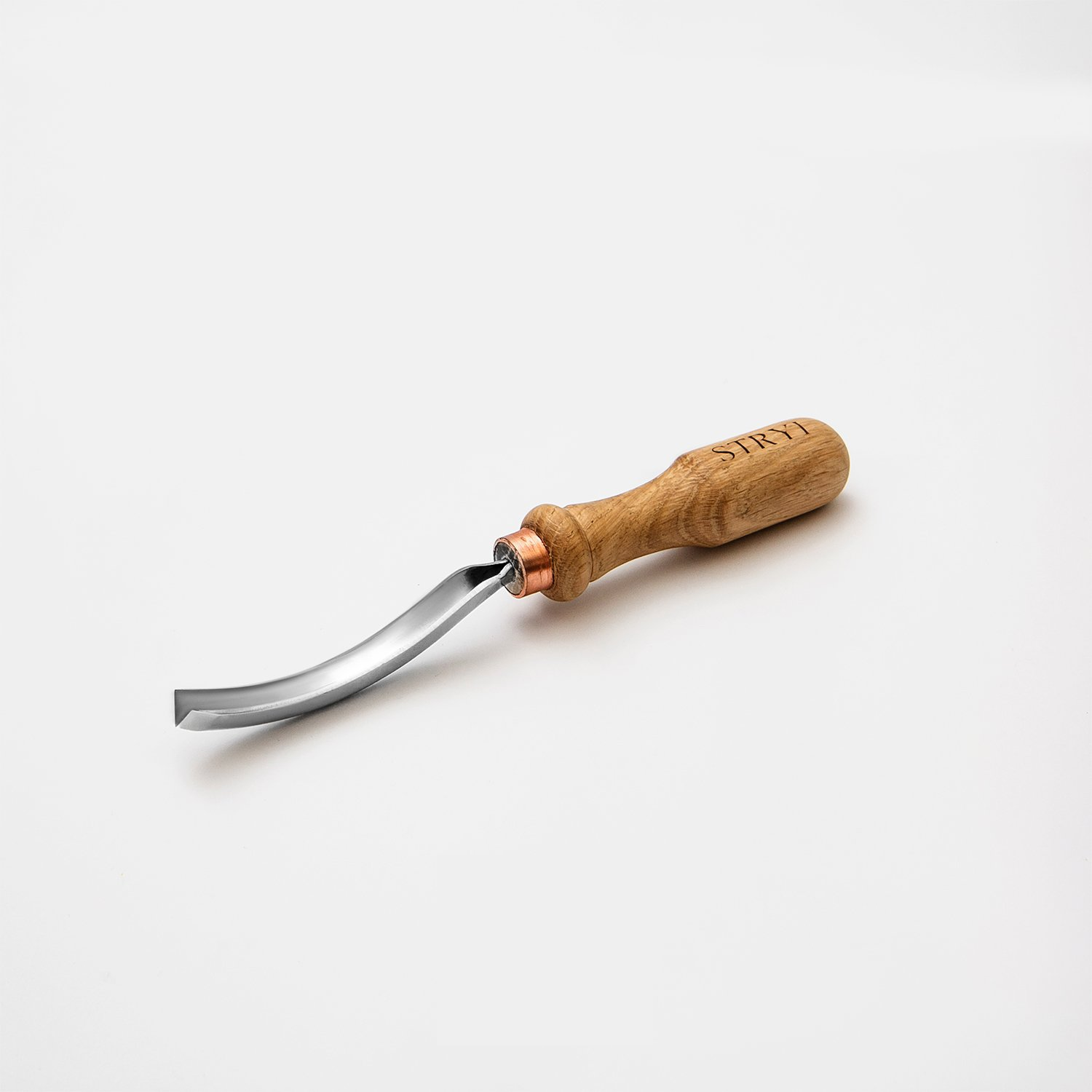Langgebogene Hohleisen sind entlang der Klinge gebogen. Diese Biegungen verändern den Winkel, in dem die Schneide zu schneiden beginnt, und erleichtern so das Schneiden in Vertiefungen wie Schalen und tiefe Reliefs. Die Hohleisen, die es in lang- und kurzgebogener Ausführung gibt, eignen sich auch gut zum Unterschneiden von Bereichen. Das Werkzeug besteht aus langlebigem Kohlenstoffstahl, der sich besonders für die Herstellung von Werkzeugen für die Holzschnitzerei eignet. Die ergonomische und optische Griffform ermöglicht komfortables, lang anhaltendes Schnitzen ohne zusätzliche Belastung der Hände. Jeder unserer Meißel wird vollständig von Hand geschärft, ohne scharfe Kantenabfälle, was einen weichen, gleichmäßigen, glatten und sauberen Schnitt in hartem und weichem Holz gewährleistet. Dieses Schärfen ist außerdem für langes Arbeiten geeignet und muss nicht oft nachgeschliffen werden.