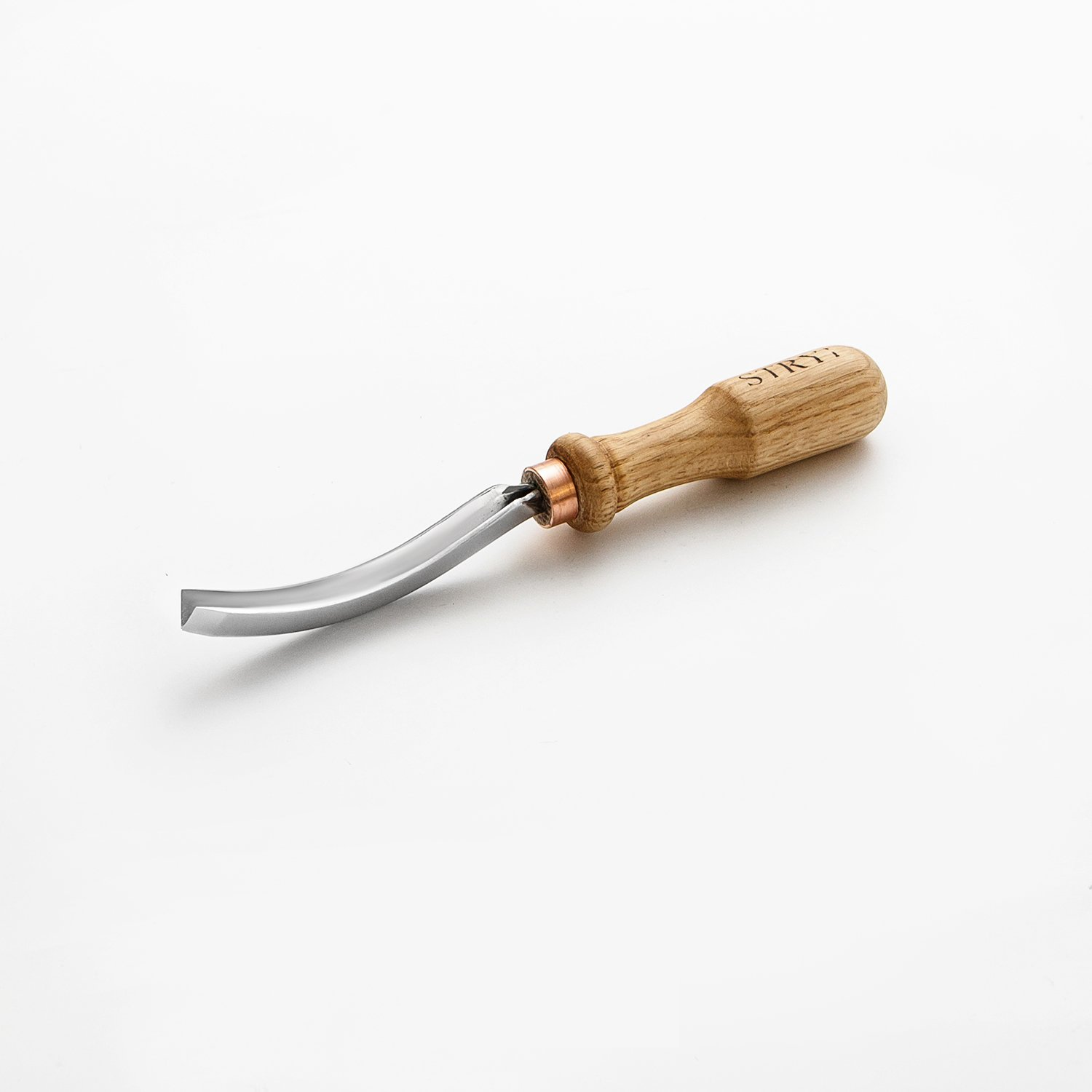 Las gubias dobladas largas se curvan a lo largo de una cuchilla. Estas curvas cambian el ángulo en el que el borde comienza a cortar, lo que facilita el corte en huecos como cuencos y trabajos de relieve profundo. Las gubias, que vienen en estilos de curvatura larga y corta, también funcionan bien para socavar un área. La herramienta está hecha de acero al carbono duradero que es adecuado para la fabricación de herramientas para tallar madera. La forma ergonómica y óptica del mango permite un tallado cómodo y duradero por día sin presión adicional en las manos. Cada uno de nuestros cinceles está afilado completamente a mano sin caídas de bordes afilados que proporcionan un corte suave, uniforme, suave y claro en madera dura y blanda. Además, dicho afilado está adaptado para trabajos prolongados y no es necesario rectificarlo con frecuencia.