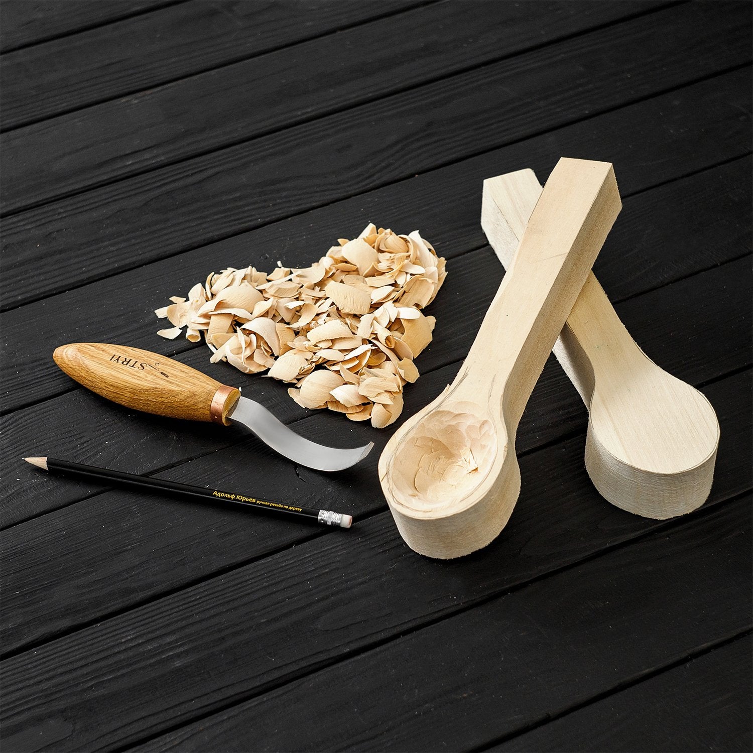 used in carving a wooden spoon